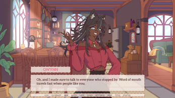Anyway very rambly and probably not even all of my thoughts but I have had SO much fun since I got introduced to it during Rue's party stream and I'm so happy y'all submitted to that so I got a chance to see this game!! I want to tell everyone I know about it!! It's just so up my alley in terms of everything I love fantasy world that I don't want to say it's quite an urban fantasy but obviously with the mix of the city and the different magic going on and I just want to live there! I want to go to the cafe I don't even drink coffee but I'll have a nice lil tea!! Every piece of the story is so lovely and I think I'm repeating myself but I mean it!! amazing job everyone on the team!!